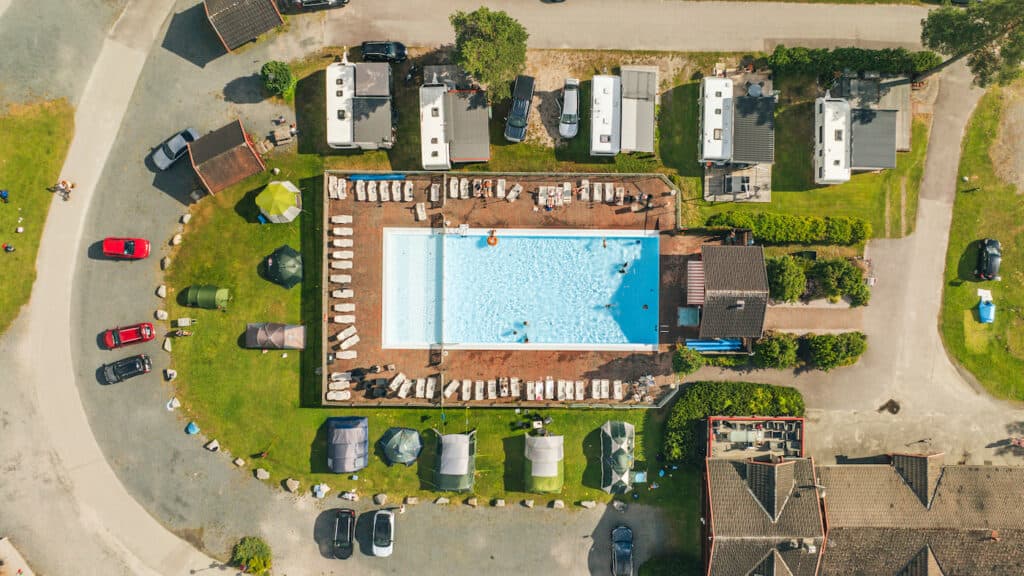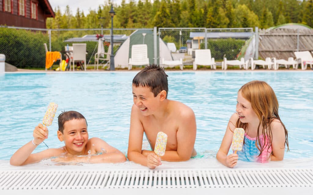 At the campsite, you can enjoy the outdoor pool area, suitable for both children and adults. The main pool is 10 x 20 metres and 90–135 cm deep. The children’s pool is 5 x 10 metres and 30 cm deep, separated from the main pool by a fence. Welcome – we wish you a lovely day in and by the pool!