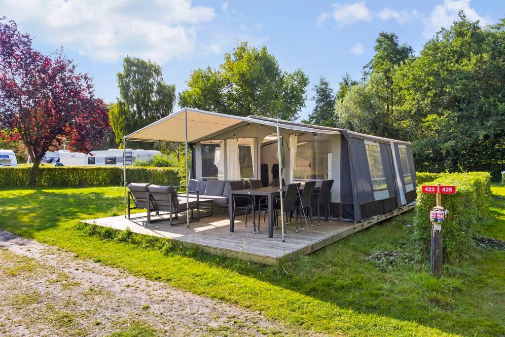 We hebben namelijk een gloednieuw glampinggebied ingericht met vier ruime en luxe glampingtenten van topkwaliteit van Isabella. De tenten zijn volledig ingericht met comfortabele meubels en echte bedden – je vergeet bijna dat je in een tent verblijft. Hier geniet je van luxe en comfort op hoog niveau. En het mooiste? Je hoeft zelf geen tent op te zetten of af te breken. Het is eigenlijk alsof je in een hotel midden in de natuur verblijft.