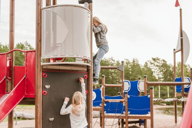 Op het kampeerterrein vlak bij het strand is een populaire speeltuin waar kinderen kunnen spelen. Hier vind je schommels, een glijbaan en een klimrek. Geniet van het strand en het uitzicht over het Vänernmeer terwijl de kinderen spelen en plezier maken.