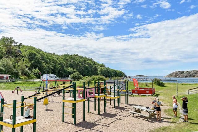 With its excellent swimming spots and sunny cliffs, Edsvik is a true pearl of the Swedish west coast. At this destination you can challenge family and friends to a round of minigolf or a beach volleyball match, or why not hire a bicycle and explore the area outside the campsite? In nearby Grebbestad you have the opportunity to enjoy activities such as boat tours along the coastline, seal safari, sea fishing, diving and kayaking. Down by the sea there is a child-friendly sandy beach with a nearby playground and jumping pillow for younger guests. This is the destination with something for everyone!