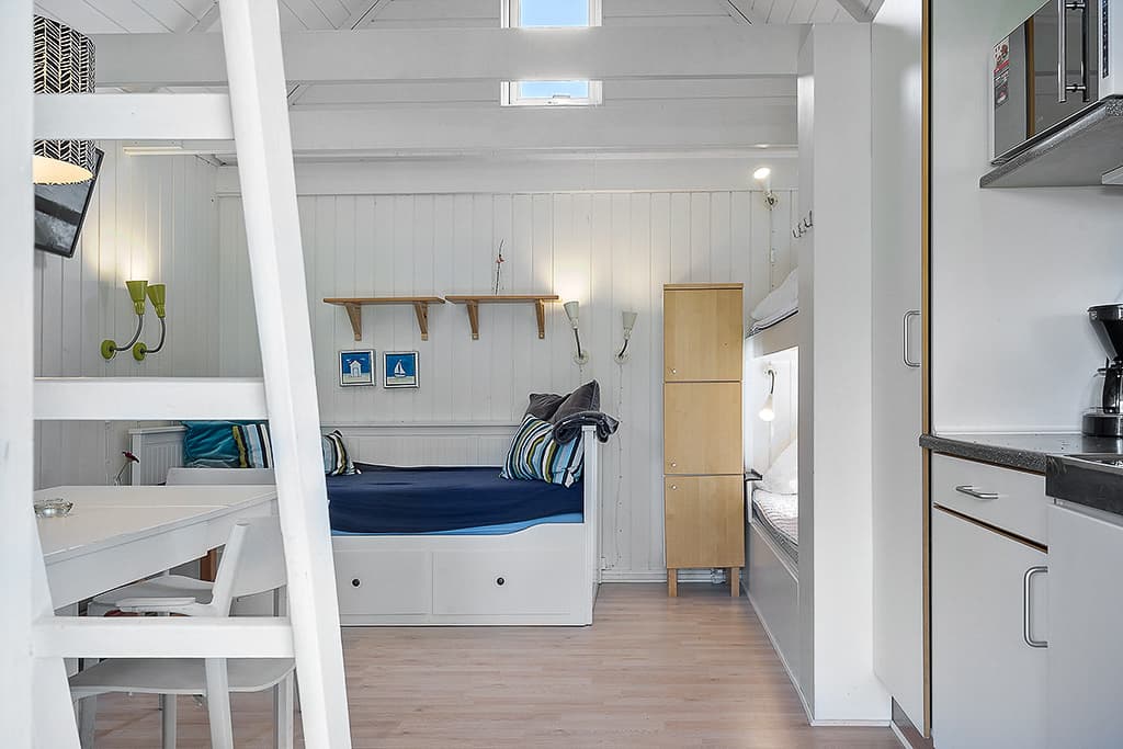 Heerlijke, goed uitgeruste vakantiewoning met een slaapzolder voor twee personen en een gezellige woonkamer met veel zitruimte. De woonkamer doet tegelijkertijd dienst als slaapkamer met slaapplaats voor twee personen en beschikt ook over een eethoek. De keukenhoek is voorzien van kookplaten, een magnetron, koelkast met vriezer, koffiezetapparaat, volledig servies en warm en koud stromend water. De huisjes zijn rookvrij. De huurprijs is inclusief elektriciteit, verwarming en water. Lichte dekbedden en kussens zijn aanwezig in de woning.