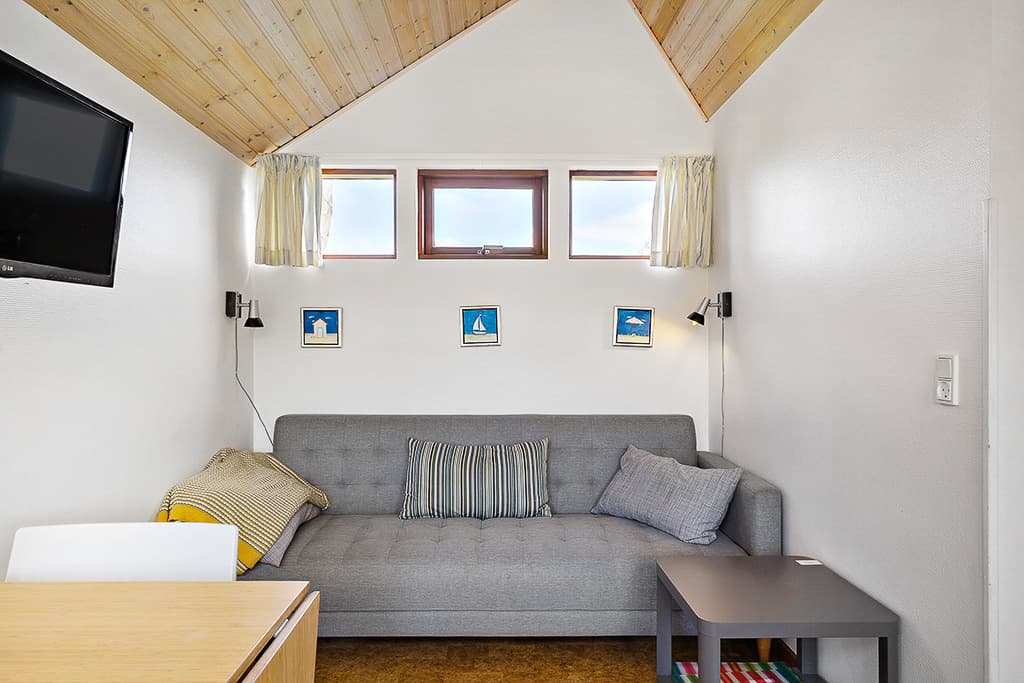 De huisjes zijn ingericht voor vijf personen (vier vaste bedden en één extra slaapplaats in de woonkamer) en zijn rookvrij. Ze zijn 25 m² groot en beschikken over een eigen toilet en douche, een aparte slaapkamer en een slaapzolder met uitzicht op de sterren. De woning heeft een fijne, ruime woonkamer en een grote keuken. De keuken is volledig uitgerust met servies, warm en koud water, vier kookplaten, een oven, koelkast met vriezer, vaatwasser, koffiezetapparaat en tv. Lichte dekbedden en kussens zijn aanwezig in de woning. De Kollund-huisjes zijn in 2020 gerenoveerd, onder andere met een nieuwe en grotere keuken. De huurprijs is inclusief elektriciteit, verwarming en water. Het hele jaar te huur.