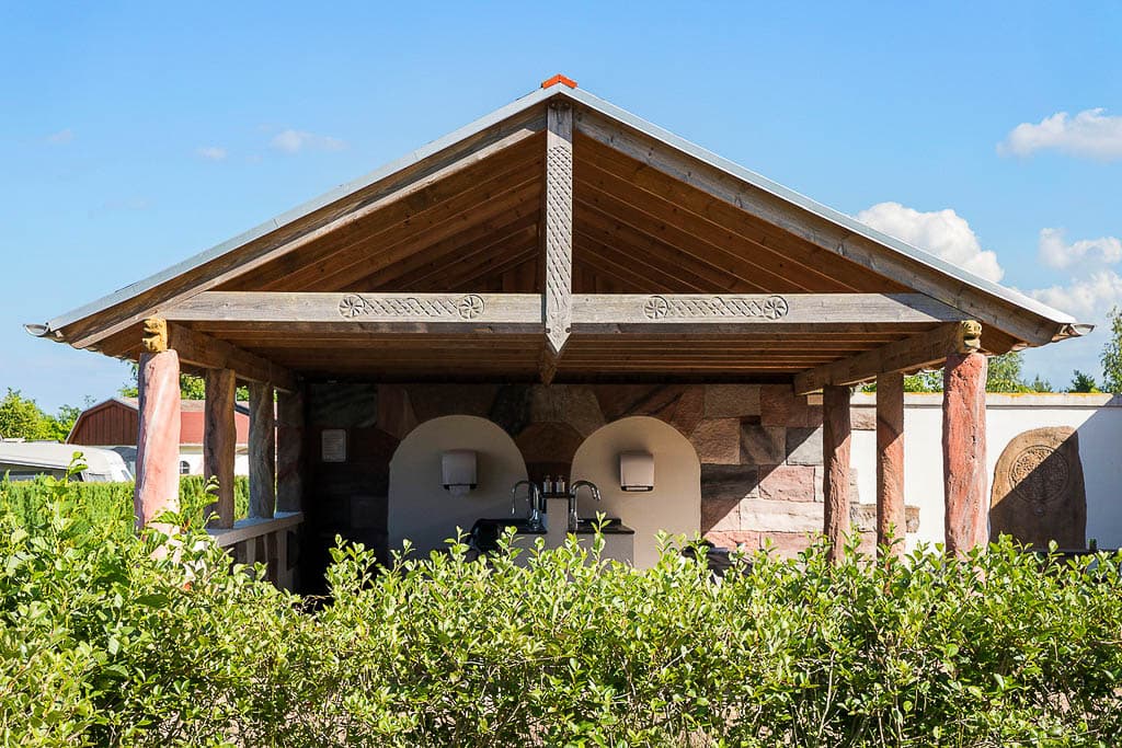 Direct buiten de keuken is een gezellige eethoek waar je samen kunt genieten van je zelfbereide maaltijd of kunt barbecueën met vrienden en familie. In dit gebouw bevindt zich ook de wasserette, uitgerust met wasmachines, drogers en voldoende ruimte om kleding op te vouwen.