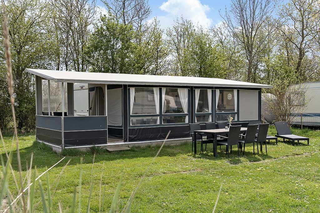 Bij Hasmark krijg je de kans om iets helemaal nieuws te proberen – je kunt namelijk je eigen caravan huren. Perfect voor wie altijd al heeft gedroomd van het campingleven, of voor wie het eerst een nacht of twee wil uitproberen voordat je zelf een caravan aanschaft. De caravan heeft een frisse, moderne inrichting en een ruime voortent waar jullie gezellige campingavonden kunnen doorbrengen met spelletjes en gezamenlijke diners. De caravan biedt plaats aan maximaal 7 personen, verdeeld over een kleiner bed, drie stapelbedden en een slaapbank. Daarnaast is er een keuken met koelkast en kleine vriezer, een badkamer met toilet, een grote voortent met eethoek en een klein terras met uitzicht op het voetbalveld.