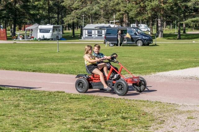 Met een fietsauto kan het hele gezin eenvoudig ons hele terrein ontdekken. Fiets alleen of samen met familie of vrienden – onze grootste fietsauto biedt plaats aan vier personen. De fietsauto’s zijn te huur in de winkel. Een leuke activiteit voor iedereen.