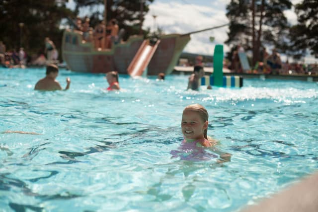 Het zwembadgebied bestaat uit drie zwembaden en twee waterglijbanen. Het kleinste zwembad is een avonturenbad voor de jongste gezinsleden en in het grootste zwembad vind je een piratenschip.