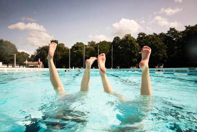 Beleef ons grote openluchtzwembad met een 50-meterbad, drie kleinere baden en een waterglijbaan. Rondom het zwembad vind je ook een extra groot springkussen en ruime ligweides om heerlijk te zonnen. Er zijn kleedkamers met douches en toiletten aanwezig. Honden zijn niet toegestaan in het zwembadgebied.