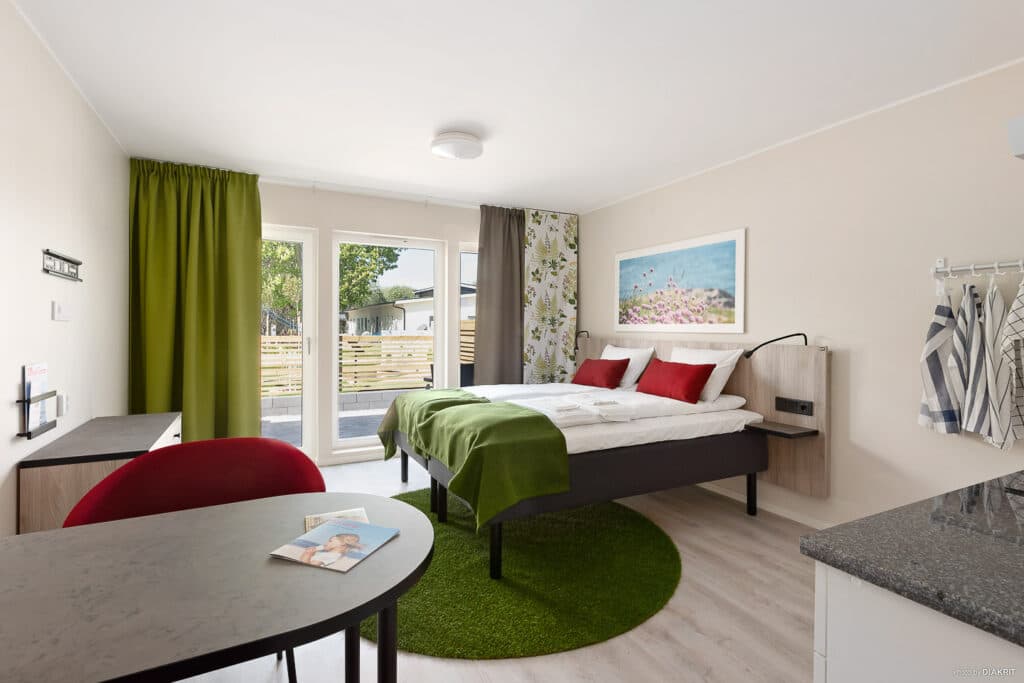 Deze comfortabele accommodatie van 26 m² is uitgerust met zowel een keuken als een eigen badkamer en wordt verhuurd volgens hotelstandaard – altijd opgemaakt en klaar voor je volgende verblijf. In de rijwoning heb je een eigen ingang en terras, met de vrijheid van een stuga en het comfort van een hotelkamer – dichtbij zowel de stad als de natuur.