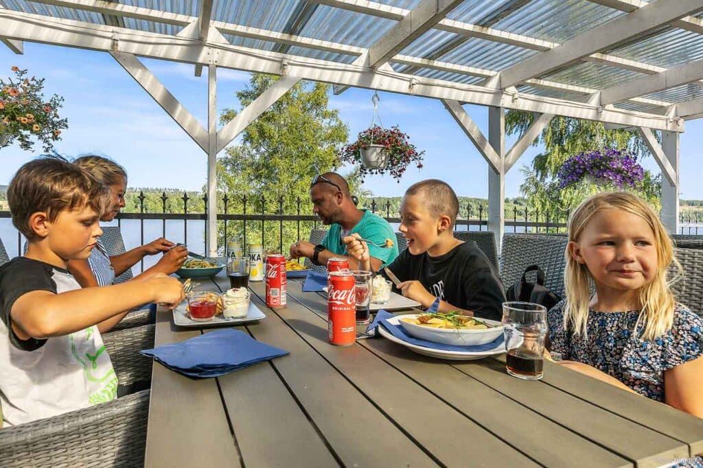 From the spacious, covered outdoor seating area with infrared heating, you can enjoy lovely views of Lake Fryken. The restaurant has a liquor licence and serves à la carte dining. Obviously, the menu includes tasty options for the kids as well.